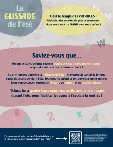 Pour en apprendre plus sur la « Glissade de l’été » et le RÔLE que vous pouvez jouer en tant que PARENT
