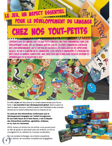 L’APPRENTISSAGE DU LANGAGE CHEZ LES TOUT-PETITS CONSTITUE UNE ÉTAPE FONDAMENTALE DANS LEUR DÉVELOPPEMENT GLOBAL. DÈS LES PREMIERS MOIS DE LEUR VIE, LES BÉBÉS COMMENCENT À INTERAGIR AVEC LEUR ENVIRONNEMENT, QUE CE SOIT PAR DES GAZOUILLIS, DES BABILLAGES OU DES EXPRESSIONS FACIALES. AU FUR ET À MESURE QU’ILS GRANDISSENT, LEUR CAPACITÉ À COMPRENDRE ET À PRODUIRE DES MOTS ÉVOLUE DE MANIÈRE SIGNIFICATIVE. MAIS SAVIEZ-VOUS QUE LA MEILLEURE FAÇON DE SOUTENIR CET APPRENTISSAGE EST DE PASSER PAR LE JEU?